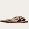 Slip into the VLOGO slides from Valentino Garavani for effortless vacation-ready glamour. Made from go-with-everything calf leather, they’re embellished with elegant tonal monograms at the vamp. Wear yours with a sarong and floaty midi dresses alike.
