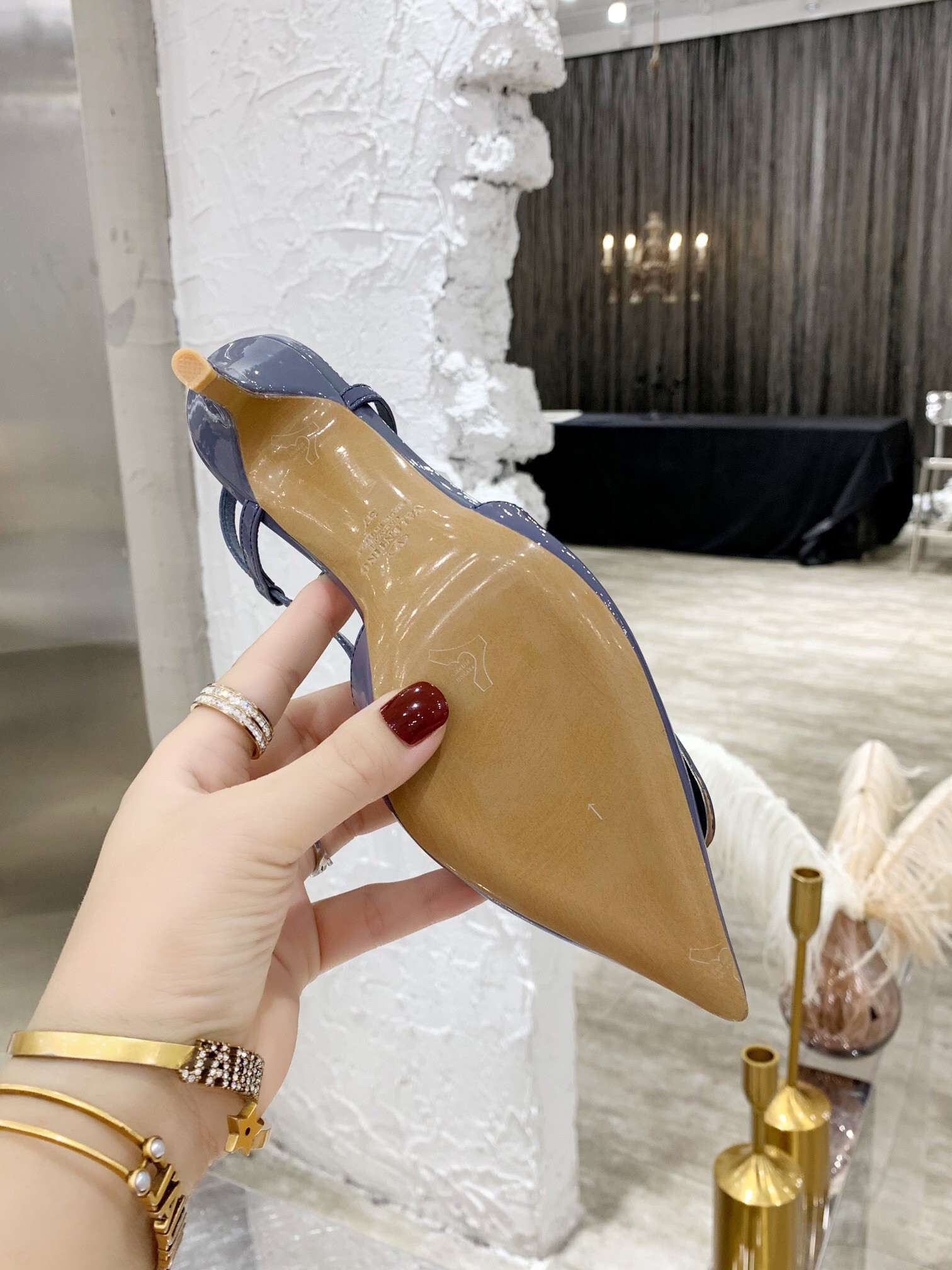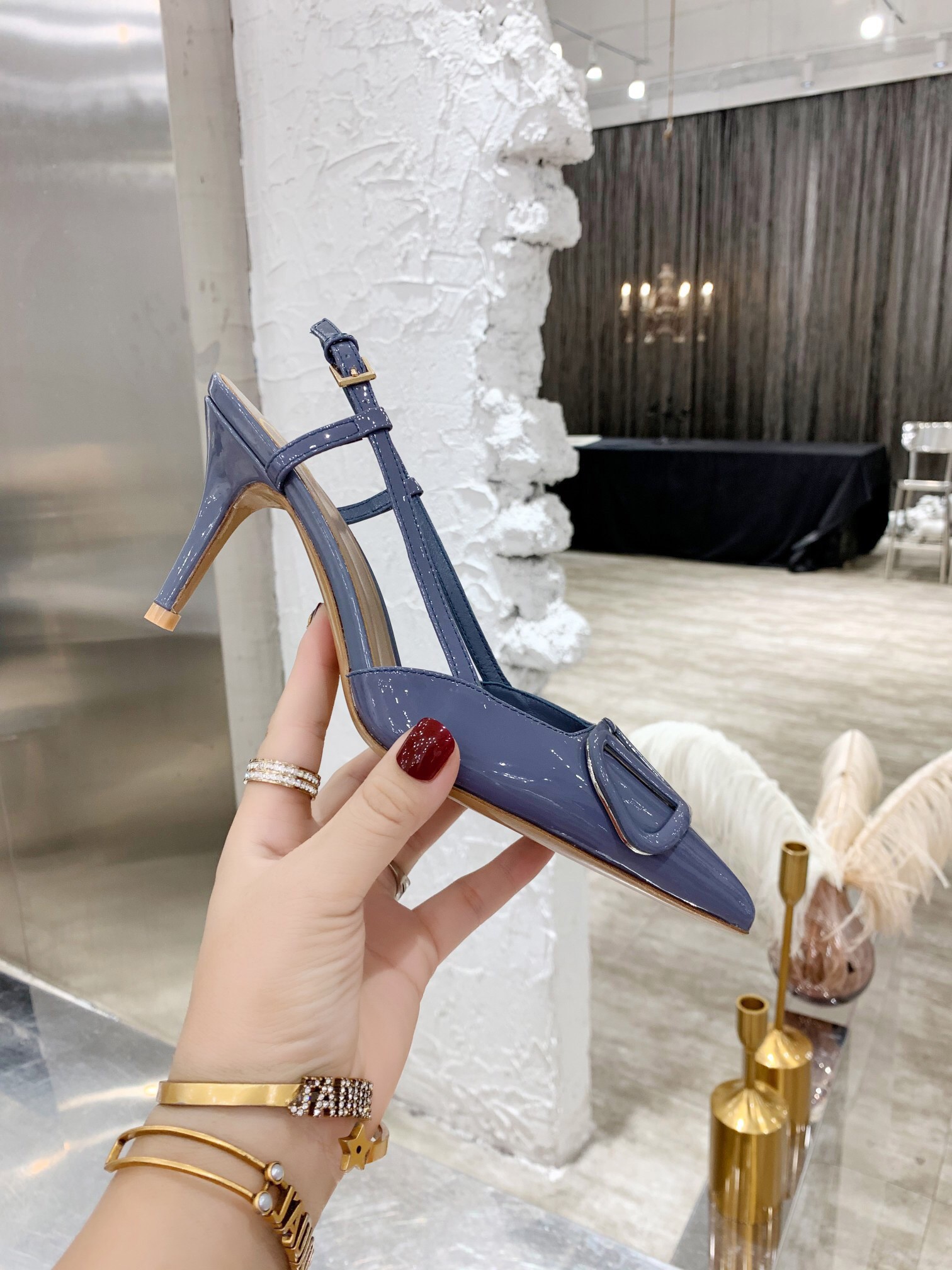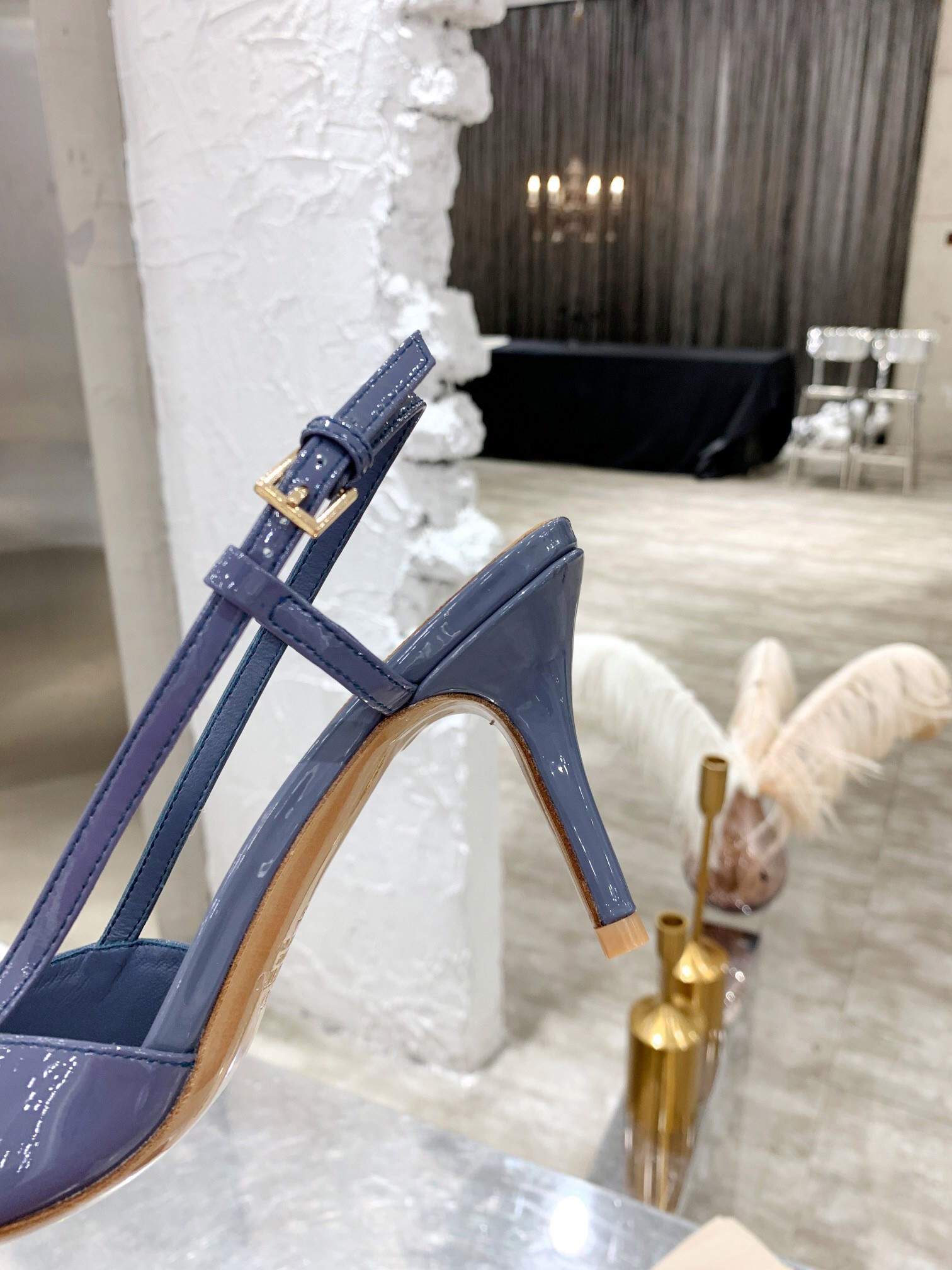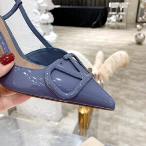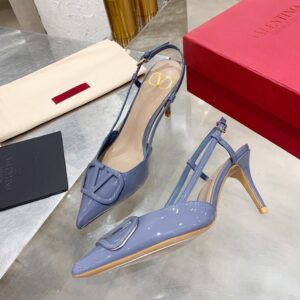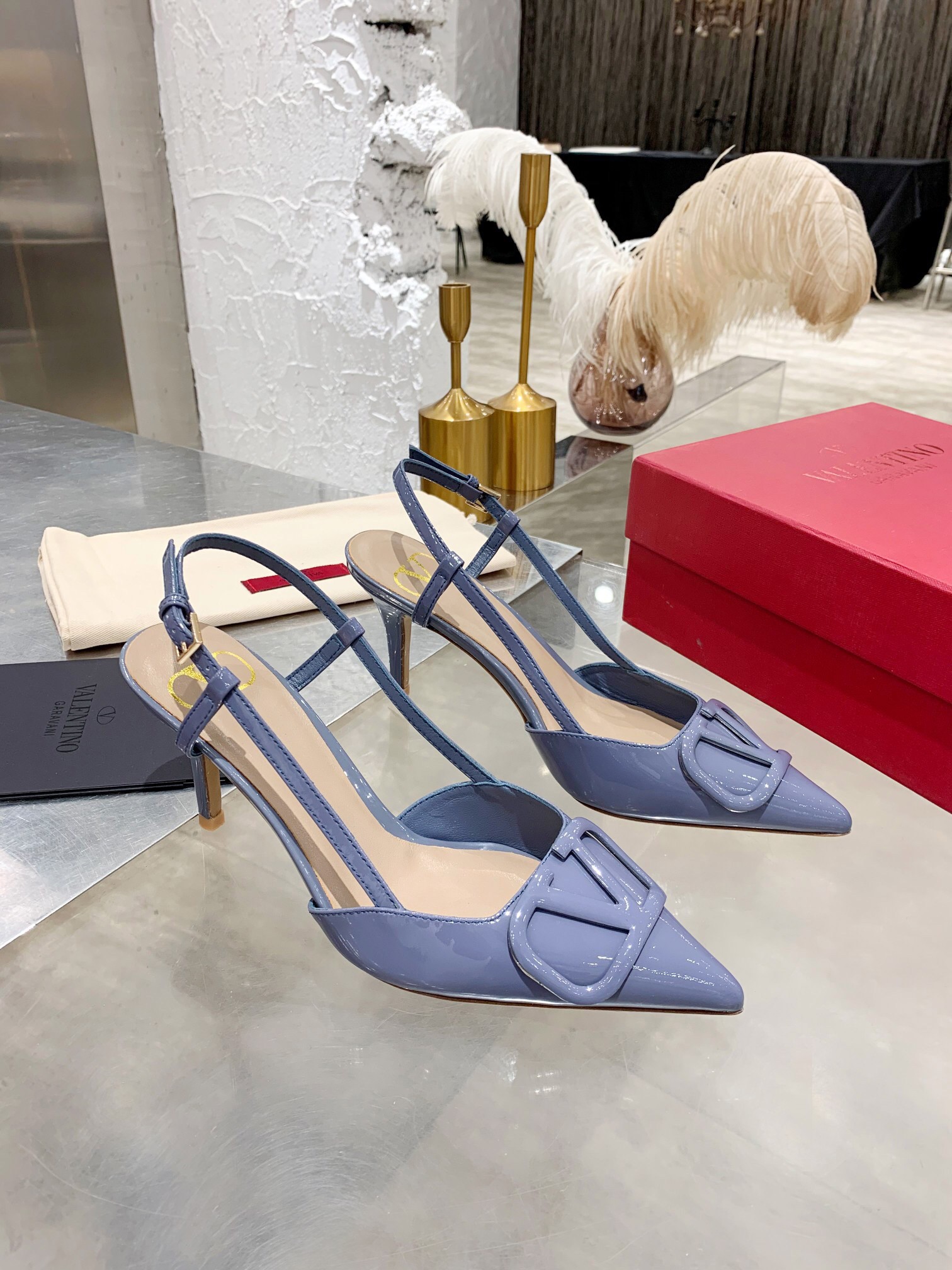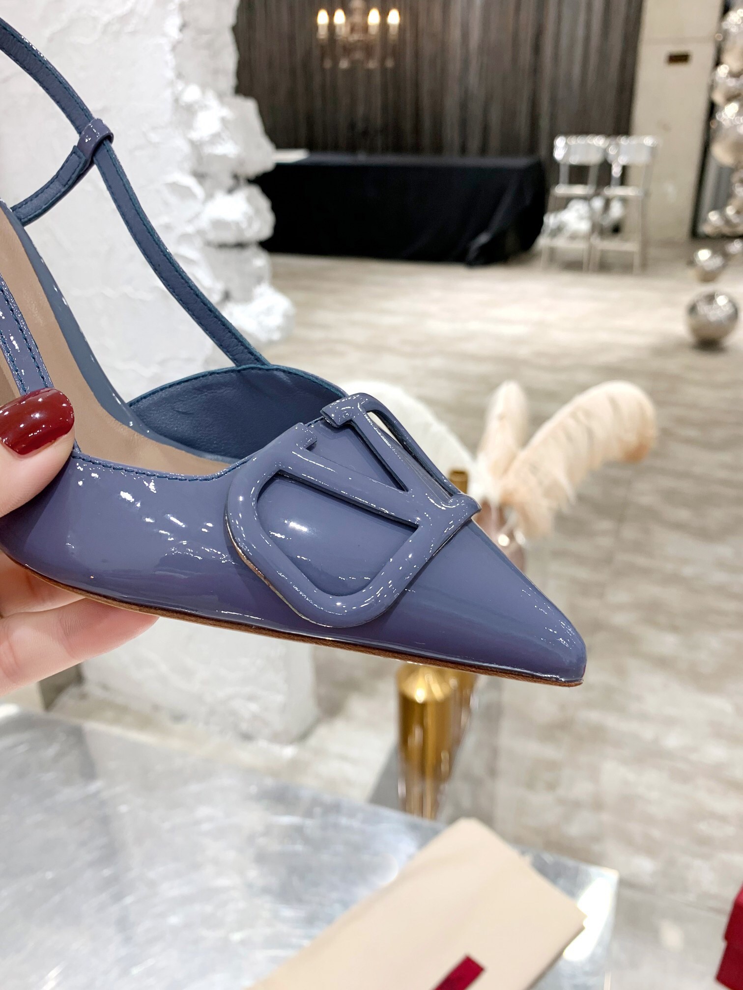 Valentino Vlogo Slingback Pumps 80mm In Blue Patent Leather