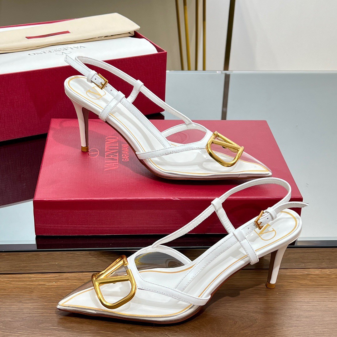 Valentino Garavani works its signature gold-tone ‘VLOGO’ into many of its accessories, making them instantly recognizable as the brand’s. These pumps are made from clear PVC and have smooth leather trims including and adjustable slingback strap. The kitten heel offers 80mm of lift.