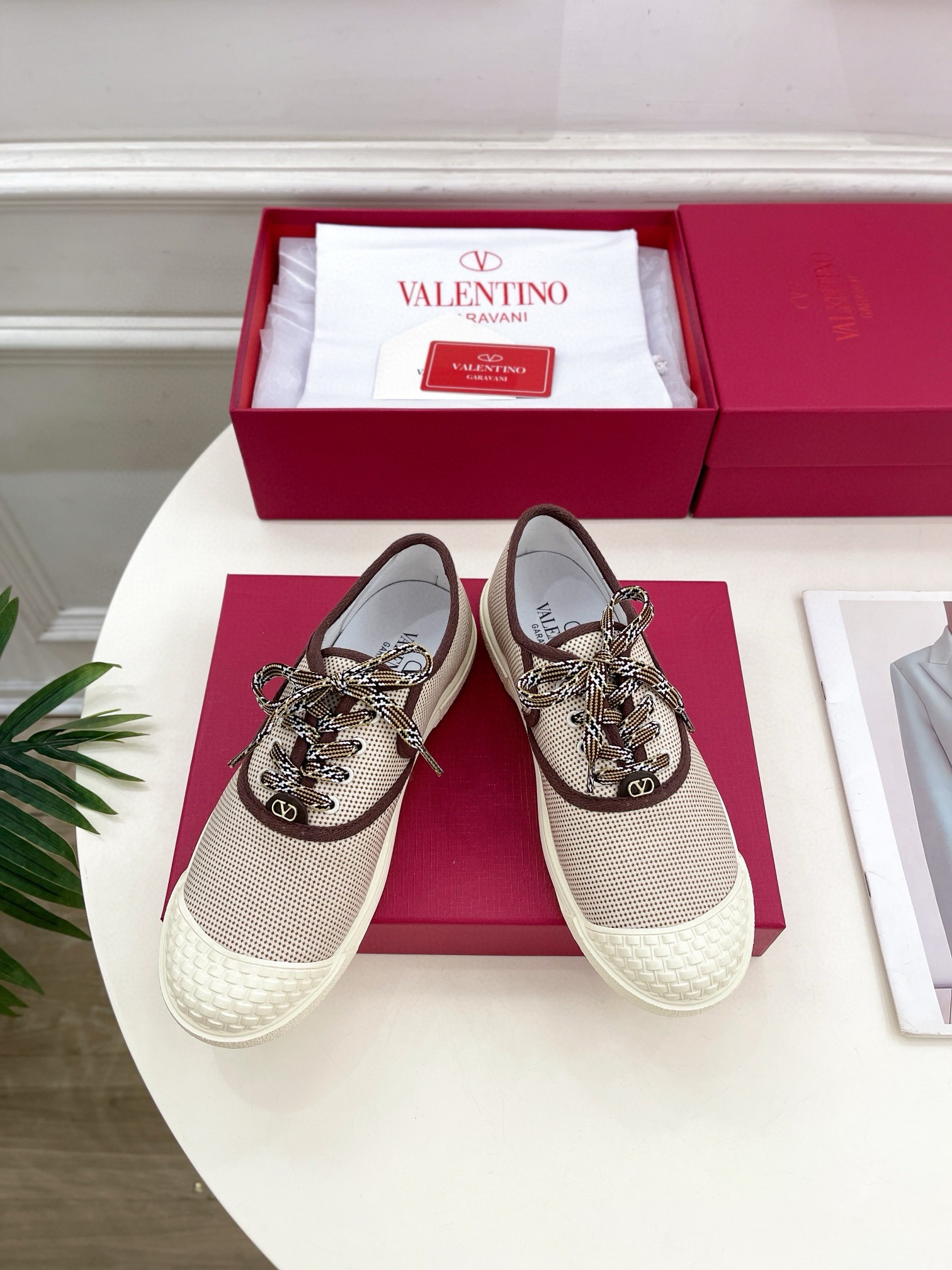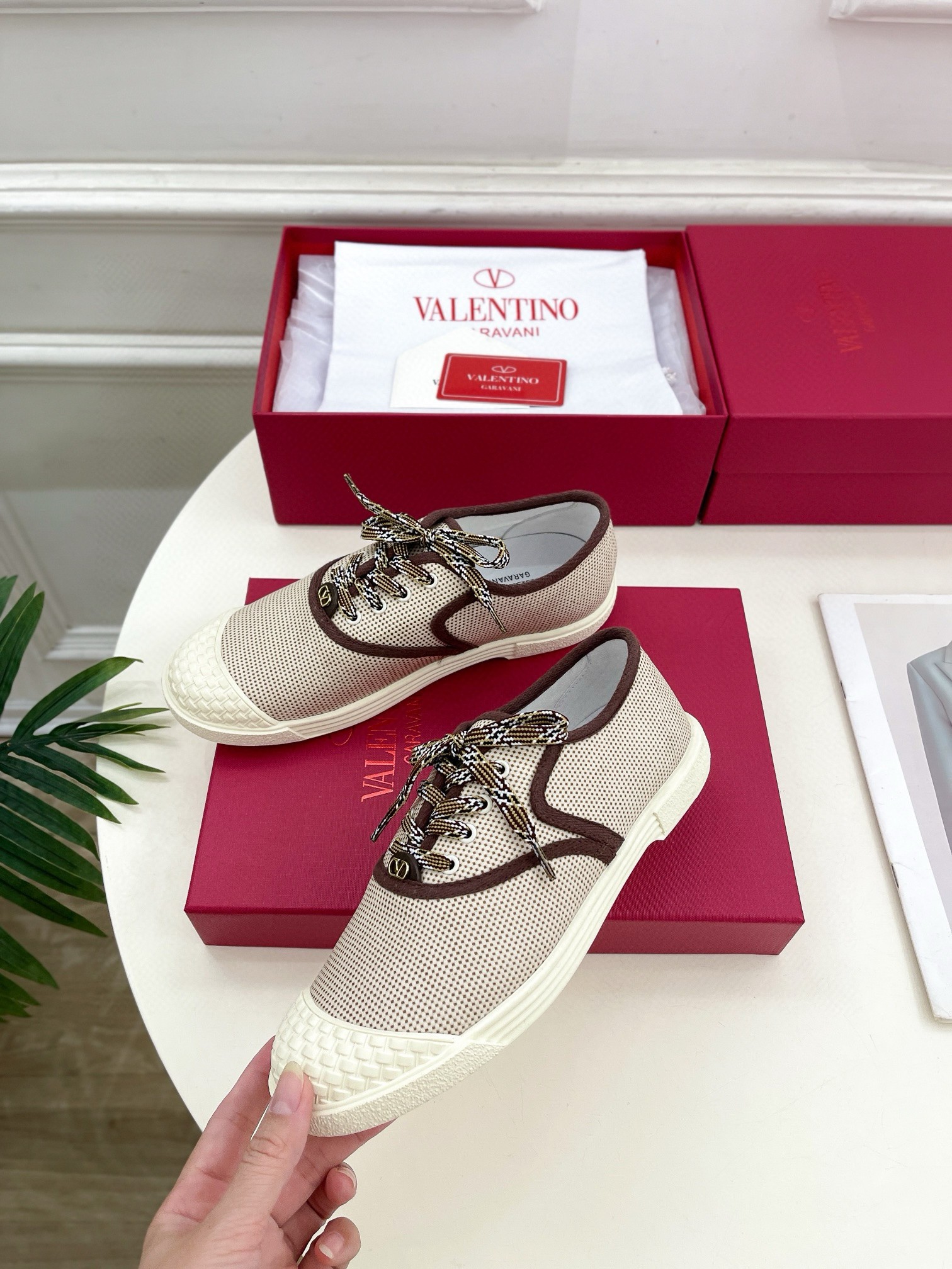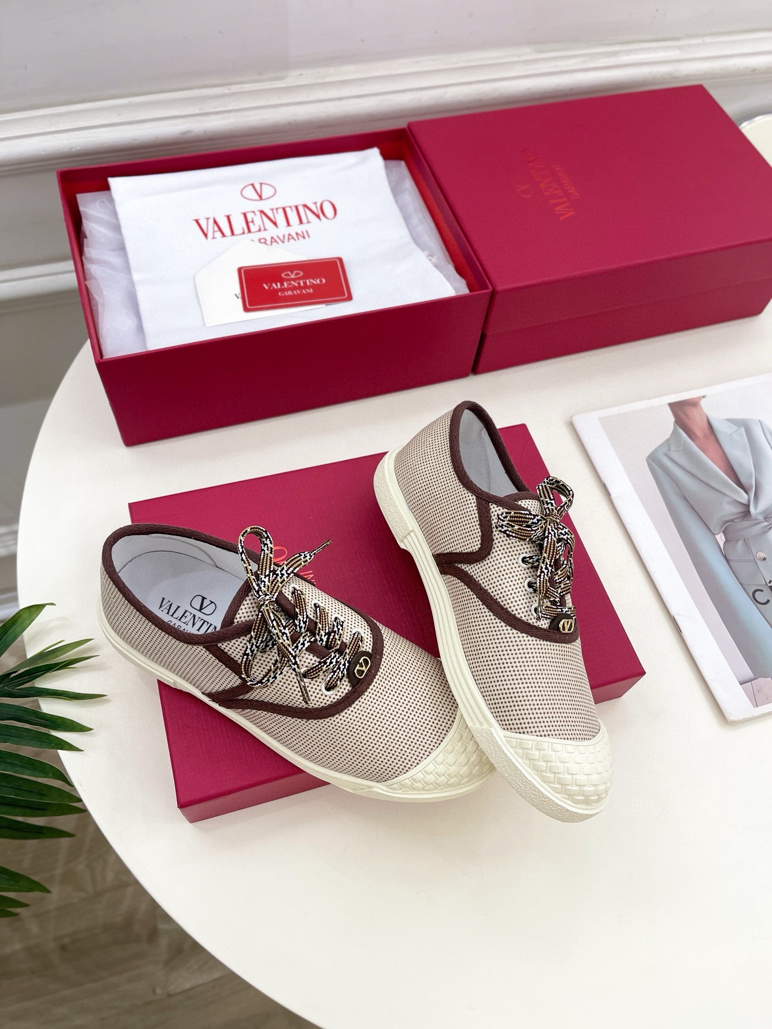 Valentino Women’s Bay By Bay Sneakers in Beige Canvas