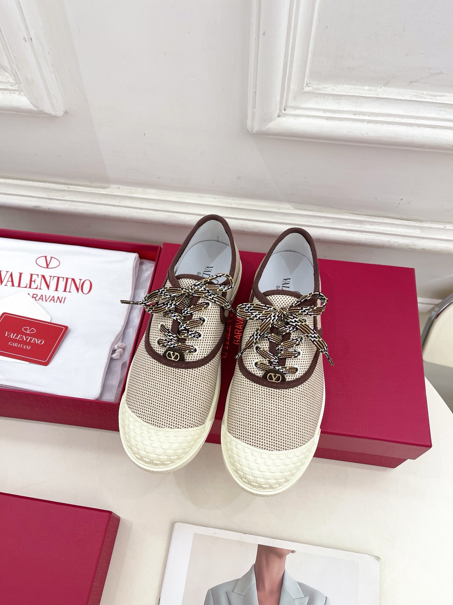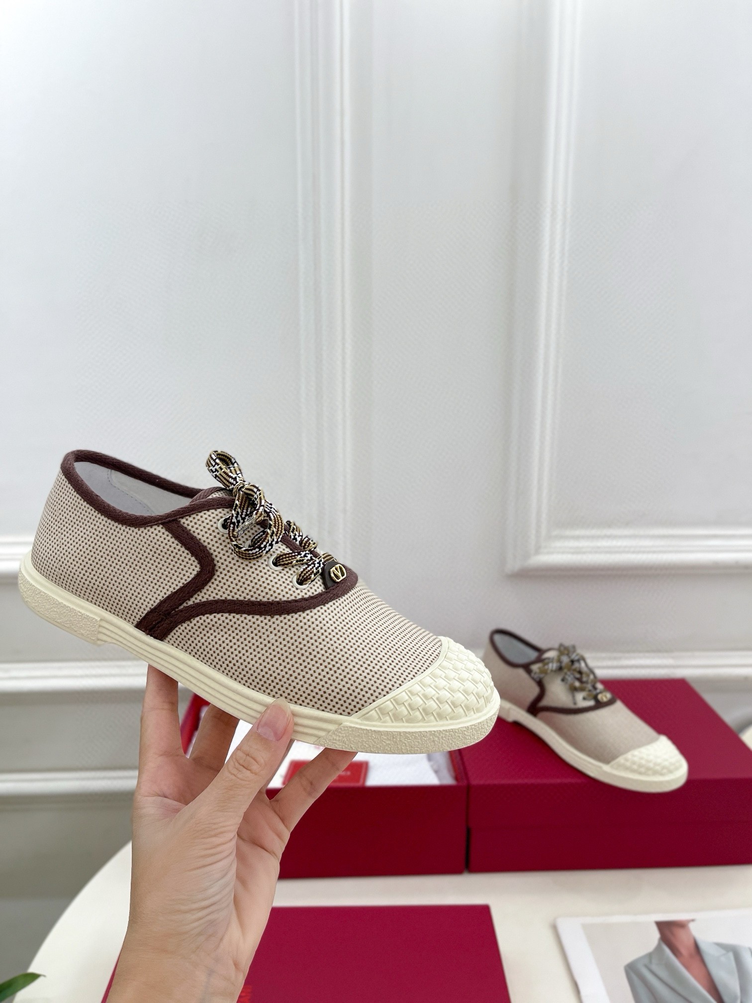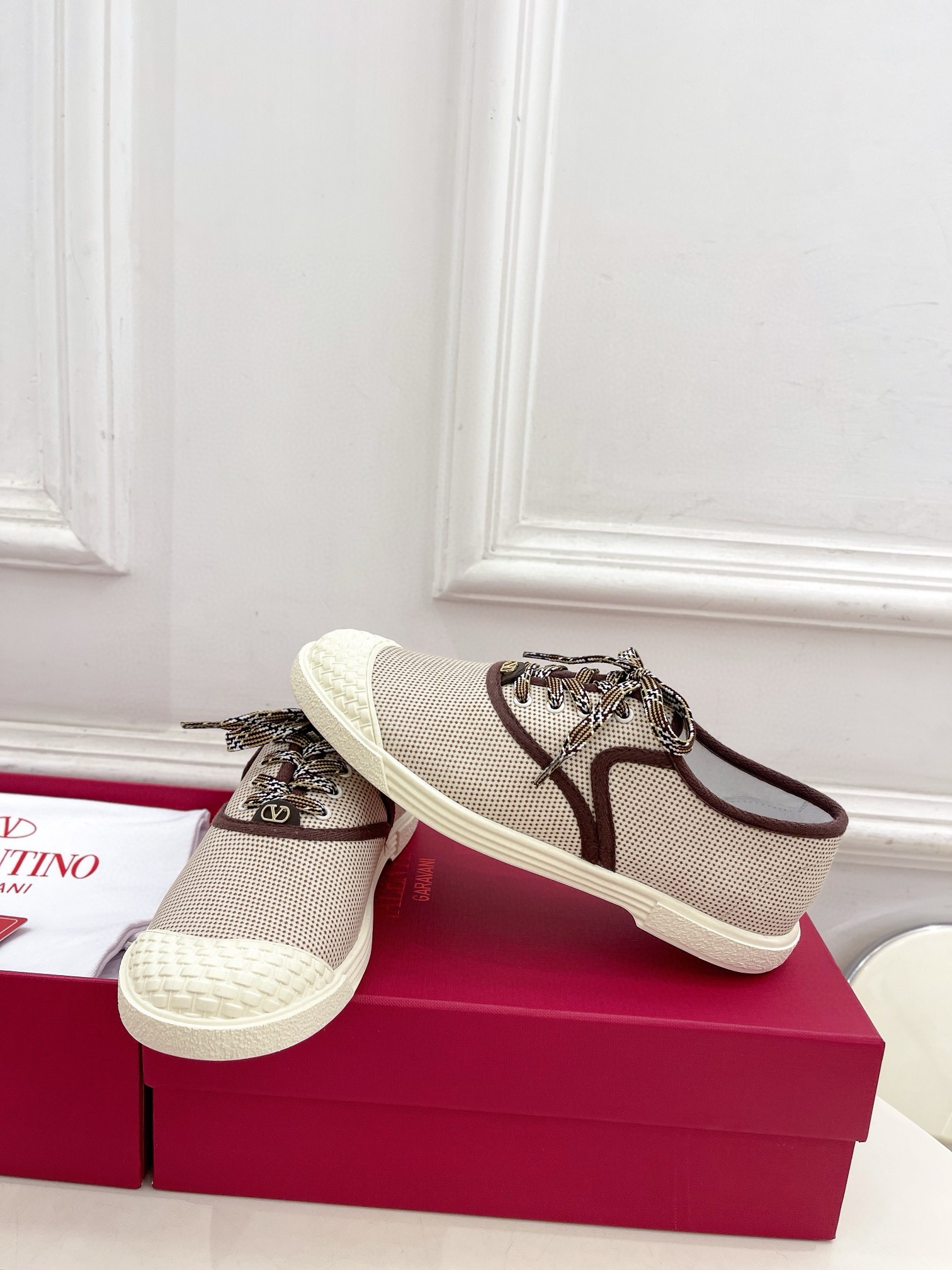 Valentino Women’s Bay By Bay Sneakers in Beige Canvas