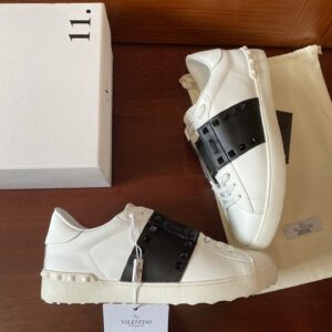 Refresh your sneaker edit with Valentino Garavani’s bright white Rockstud Untitled design, which is updated with black panels for FW19. Crafted from smooth calf leather, this pair features tonal stud details and is set on a chunky rubber sole. Work yours as part of a cool off-duty look.