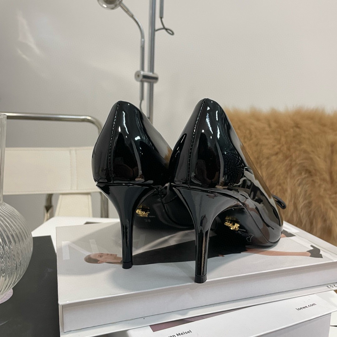 Versace Gianni Ribbon Pumps 80mm In Black Patent Leather