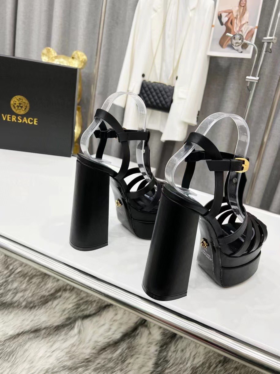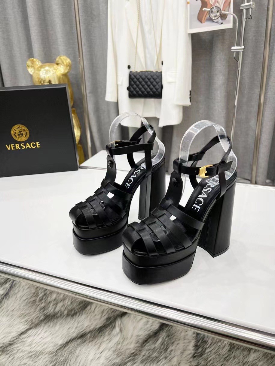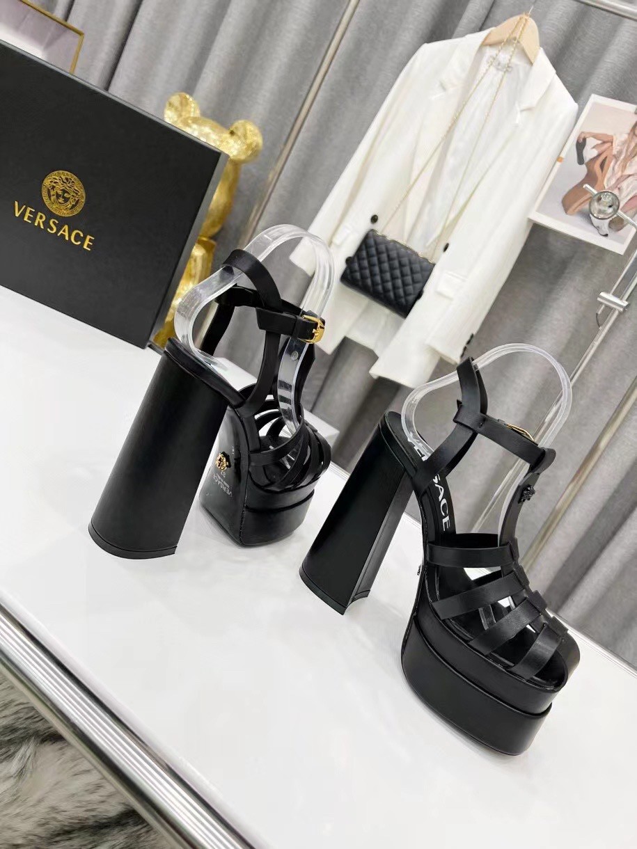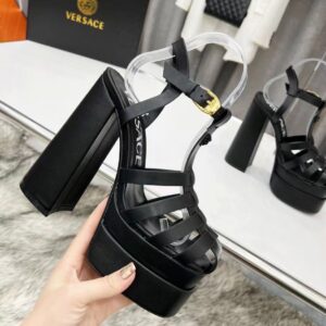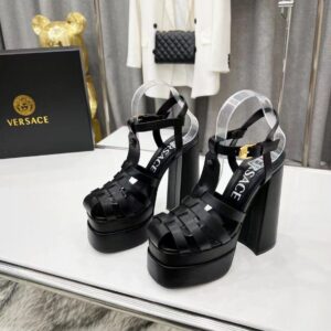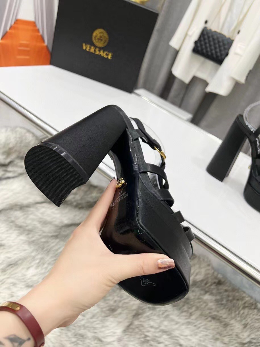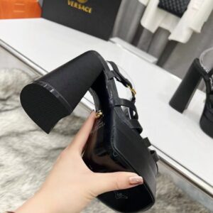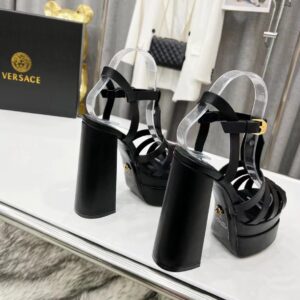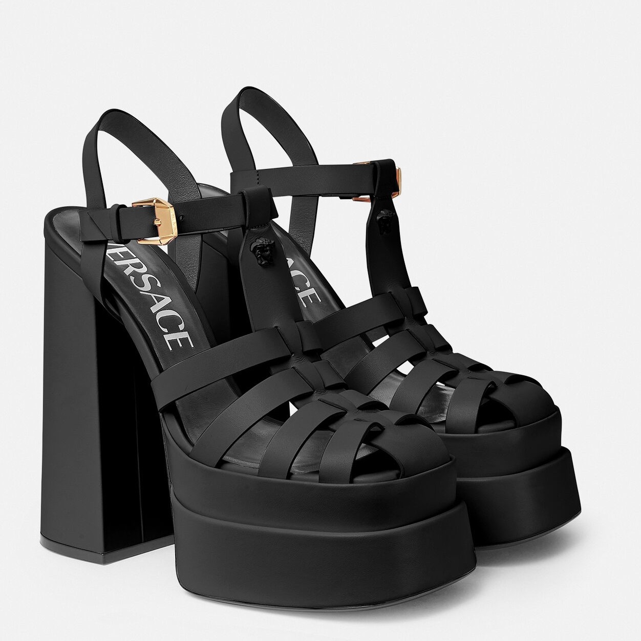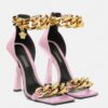 Built for high impact, these ankle strap La Medusa sandals from Versace are set atop a vertiginously-high chunky heel. The design is completed with Medusa Head detailing in a matching tone, celebrating one of the label’s most iconic motifs.