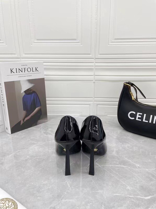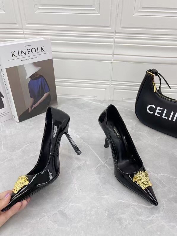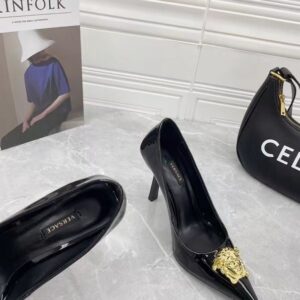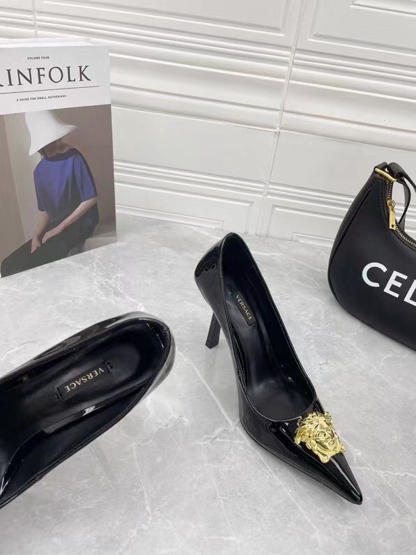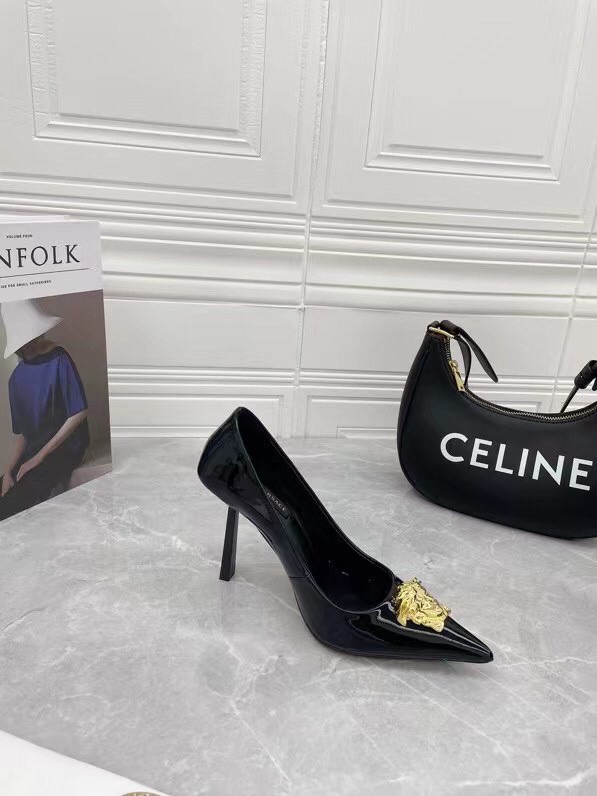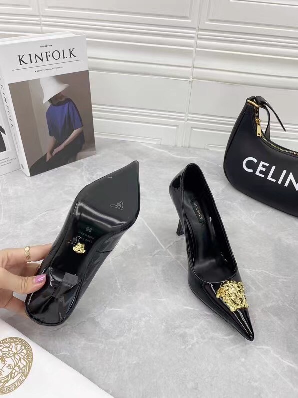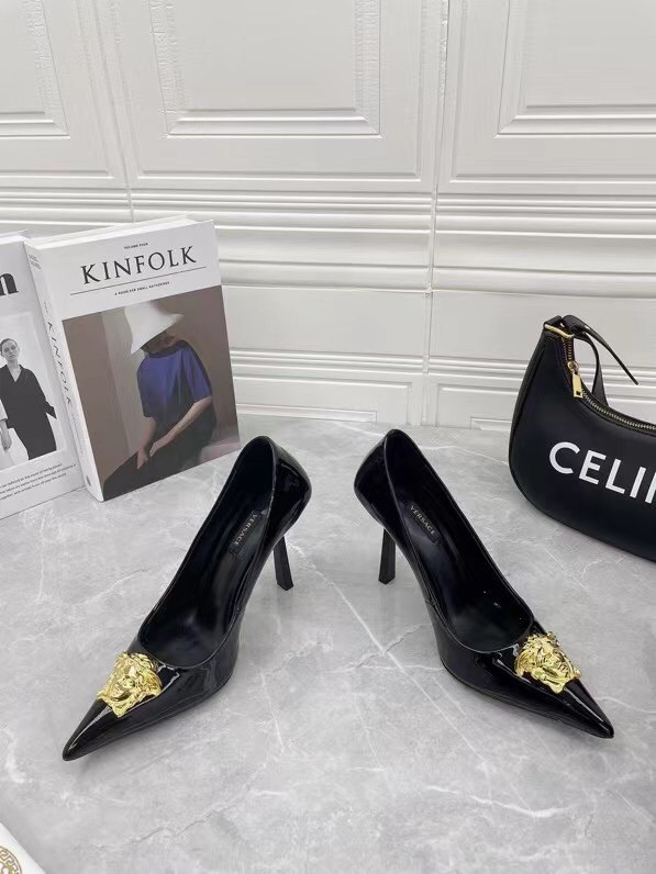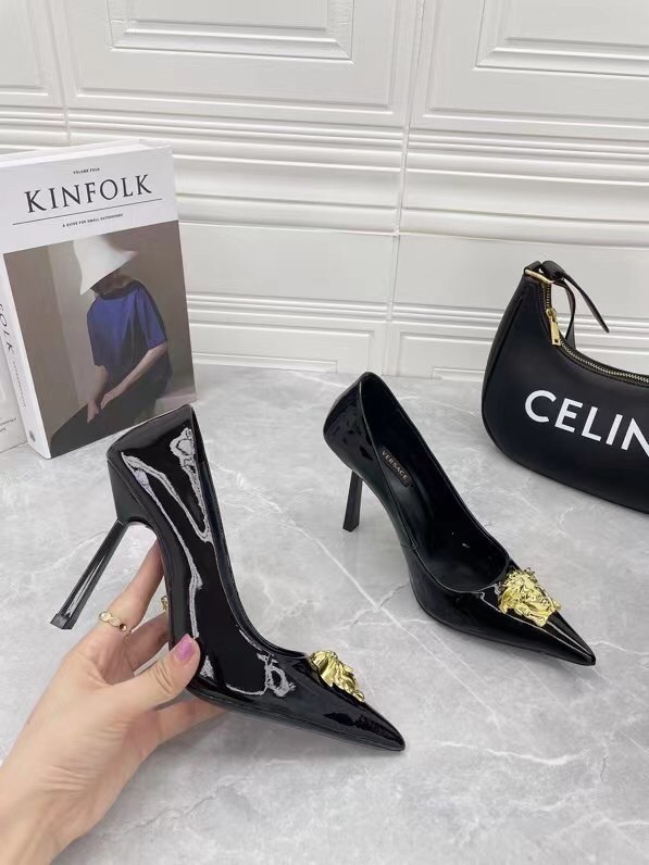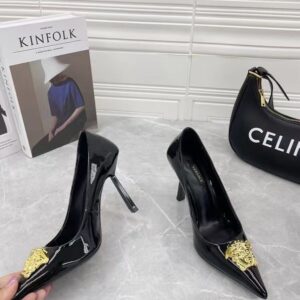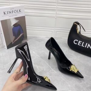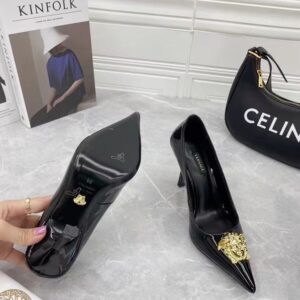 Continuing to celebrate one of their most famed motifs, Versace brings the iconic Medusa Head into their footwear offering. Crafted from glossy patent leather, these pumps are accented with the label’s instantly recognisable Medusa Head appliqué to the front.