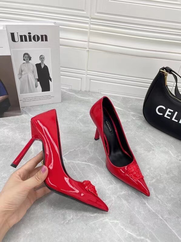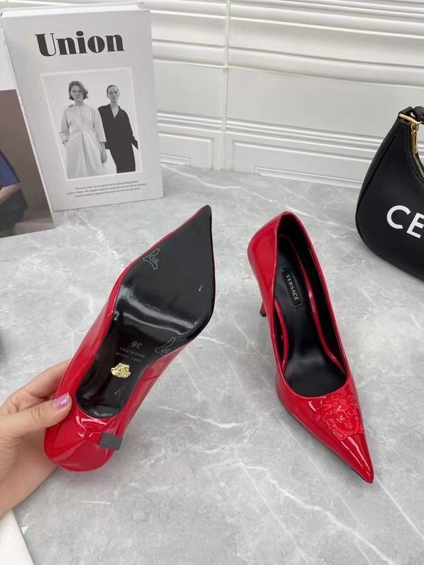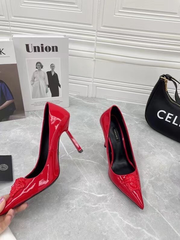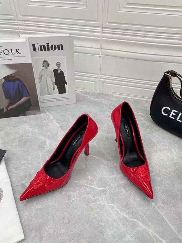 Versace La Medusa Pumps 105mm In Red Patent Leather