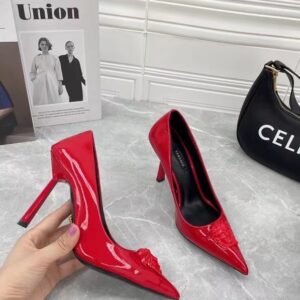 Continuing to celebrate one of their most famed motifs, Versace brings the iconic Medusa Head into their footwear offering. Crafted from glossy patent leather, these pumps are accented with the label’s instantly recognisable Medusa Head appliqué to the front.