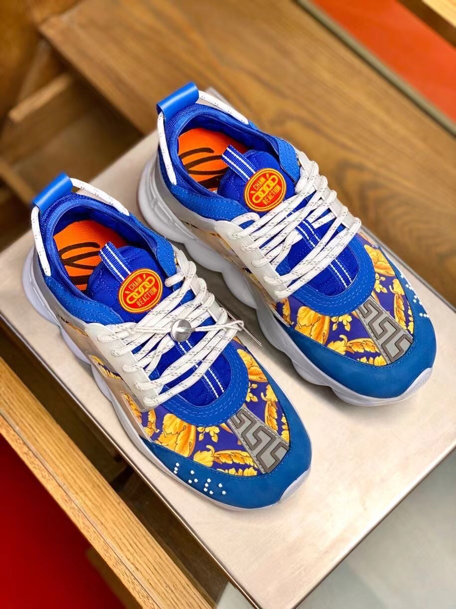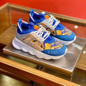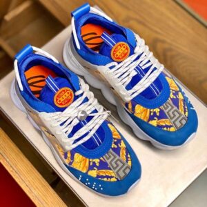 Highly ornate and extravagant – just like the Baroque era that inspired its design – Versace’s Chain Reaction sneaker is delivered in a bold blue and yellow colourway this time around. Strong and sturdy thanks to its chunky yet lightweight tooling, the patterned shoe has a supportive midfoot cage that mirrors the Italian brand’s iconic Greek Key pattern.