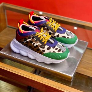 Versace Women’s Multicolour Chain Reaction Sneakers With Leopard Print